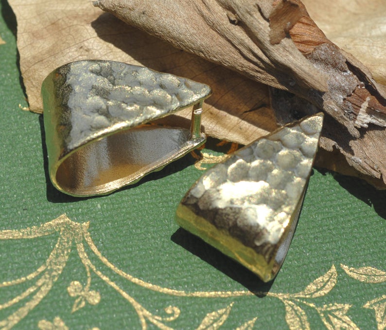 Wide pendant bail, Hammered texture, soldered posts to hold your pendant. These are ready to be used. These are handmade by us in our workshop. These are Unique Pieces, NOTE: holes need to be 3mm or larger to fit the soldered on posts. This can be adjusted by carefully cutting the two posts.