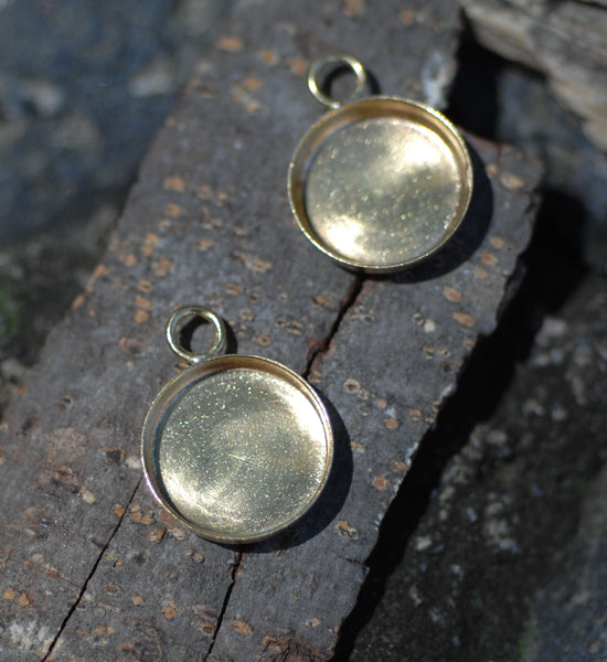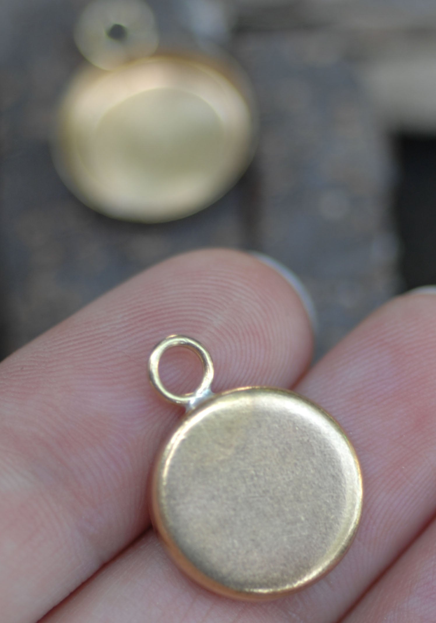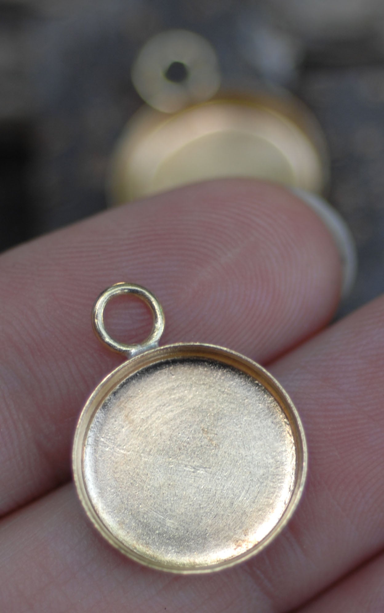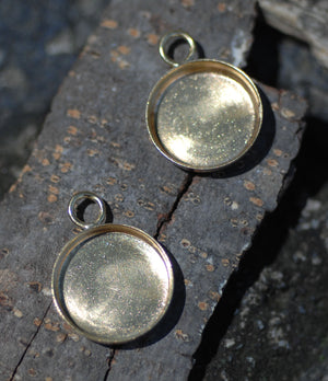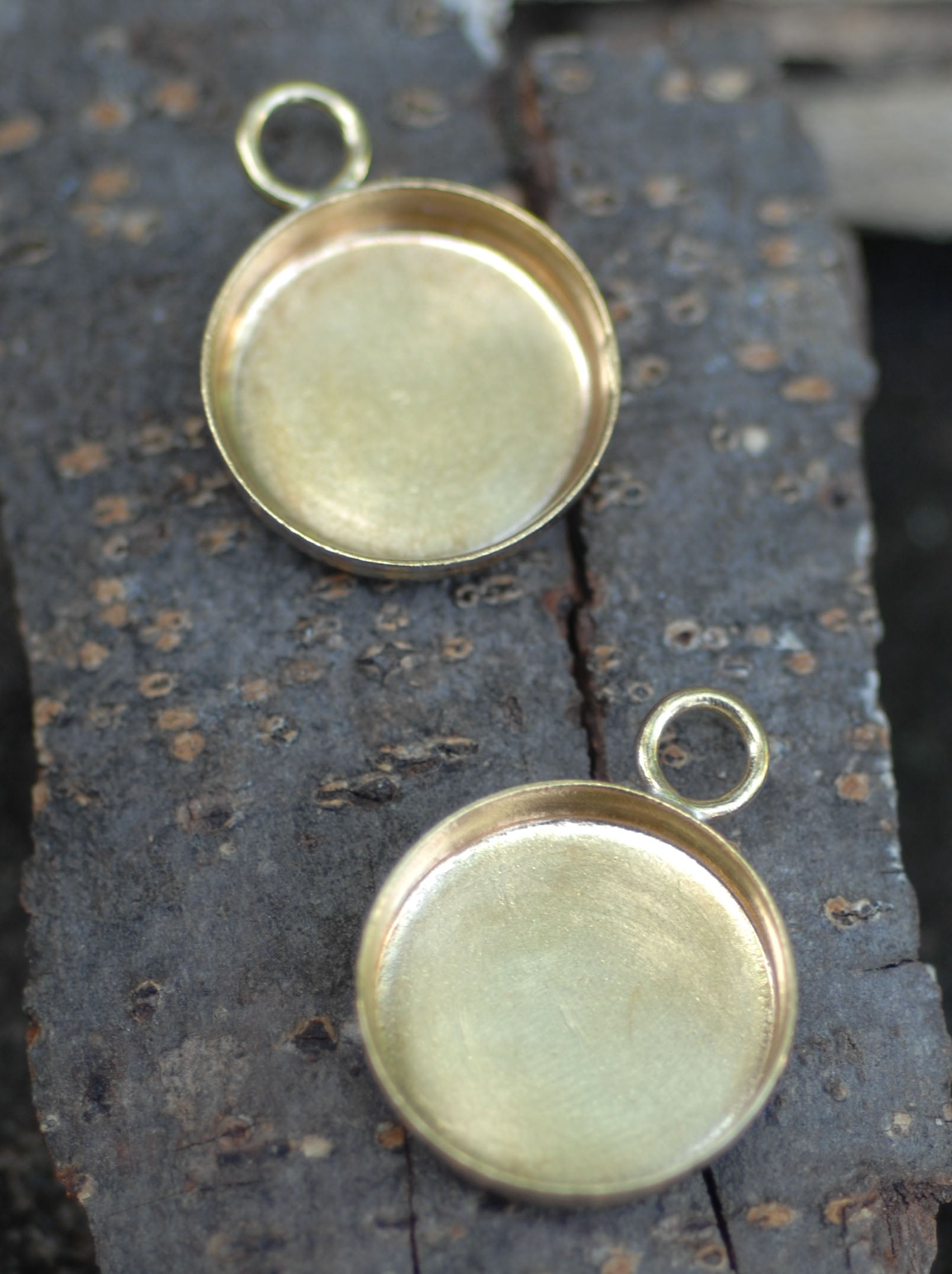 These bezel cups are ready to be set with your resin art, I also love using these to set my glass cabochons painted with alcohol ink! The bezel settings are cut from a sheet of metal, cleaned up, and then we solder on a loop. If you want the metal to retain it's finish you should lacquer it! Otherwise it will develop a natural antiqued finish. These are round bezel settings.