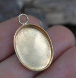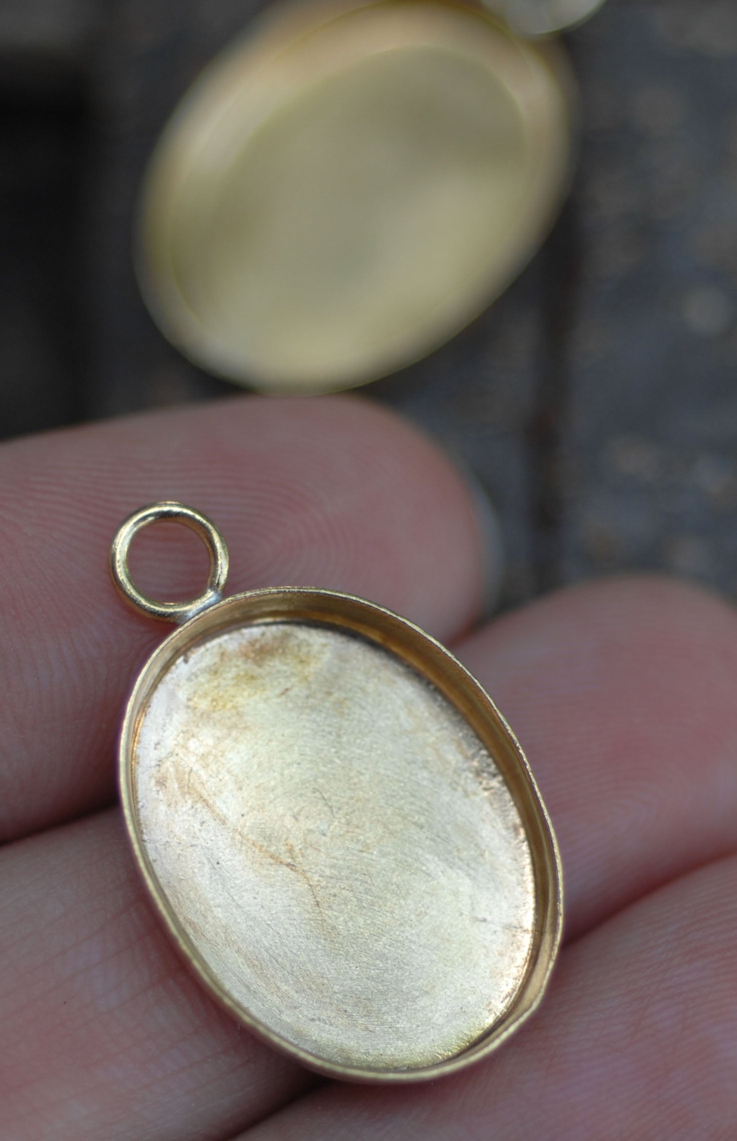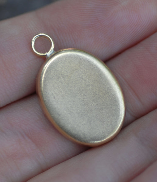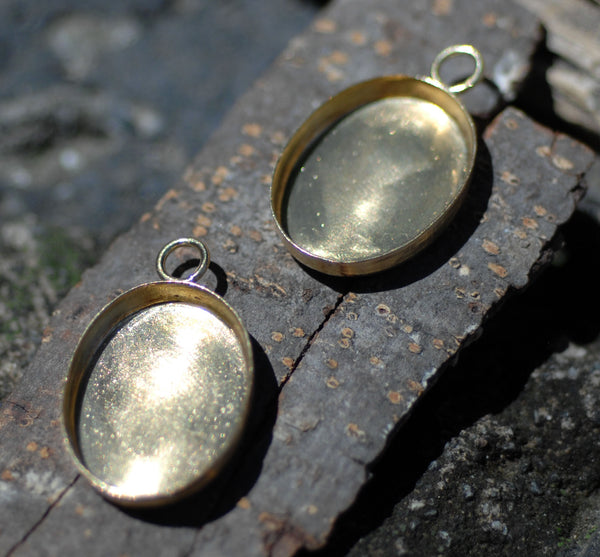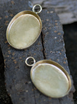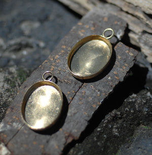 These bezel cups are ready to be set with your resin art! The bezel settings are cut from a sheet of metal, cleaned up, and then we solder on a loop. If you want the metal to retain it's finish you should lacquer it! Otherwise it will develop a natural antiqued finish. These are oval shaped bezel cups with loops to use as charms for jewelry making and resin jewelry.