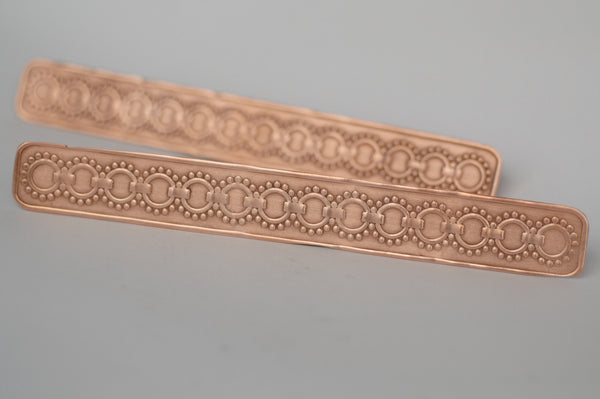 Blank cuff bracelet strips, these are textured and ready to form into a cuff. We also offer these in different widths. You can drill, cut, and rivet these to suit your designs!