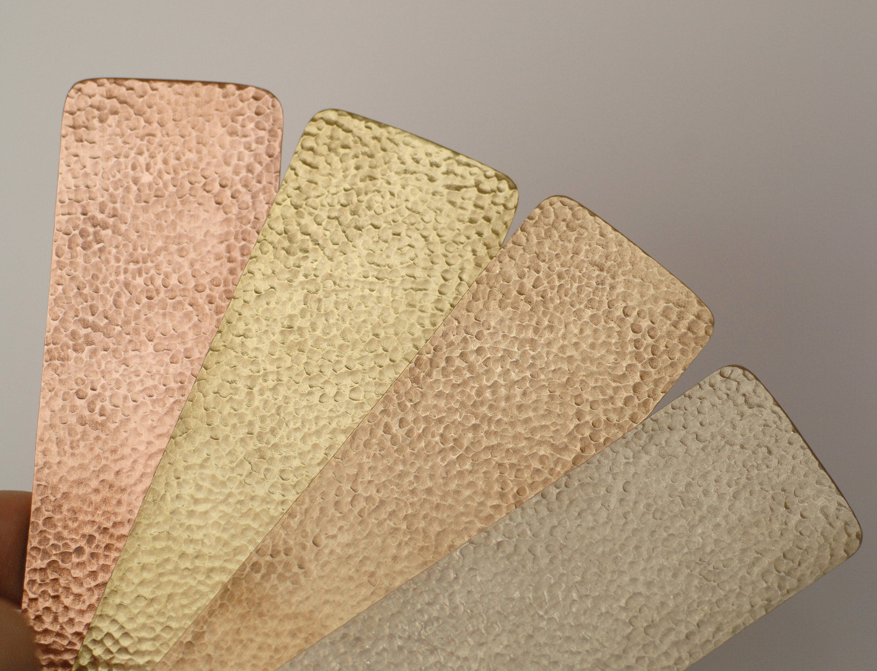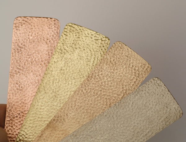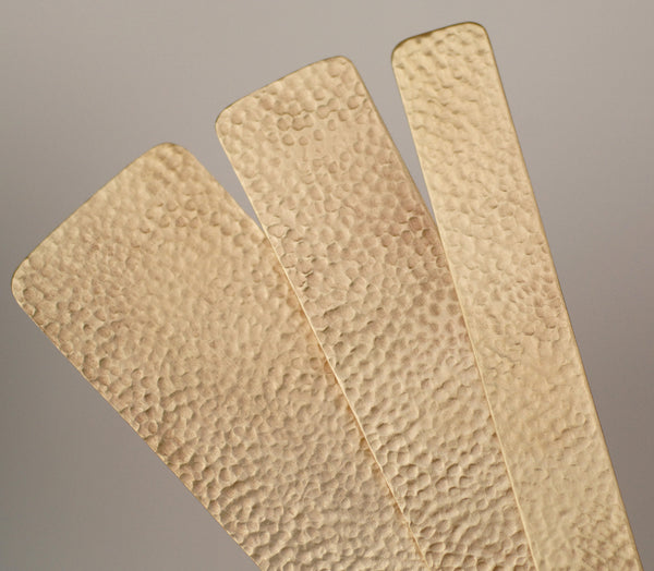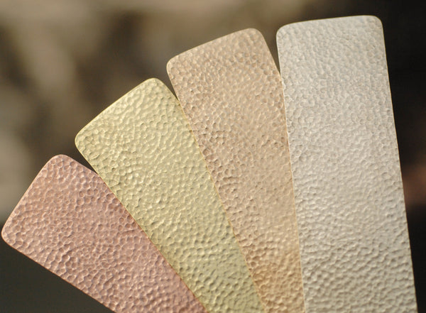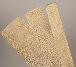 Blank cuff bracelet strips, these are textured and ready to form into a cuff. We also offer these in different widths. You can drill, cut, and rivet these to suit your designs! This is hammer pattern isn't as deep as our other hammer texture.