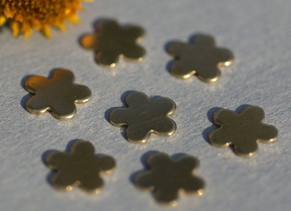 Our handmade Flower shaped metal blanks for hand stamping are high quality, cut from sheet metal, deburred, and cleaned. Make your own jewelry with our floral blanks available in Copper, Brass, Bronze, and Nickel Silver. These blanks have a nice smooth surface ideal for hand stamping. These can also be used as blanks for engraving after you finish the metal to your liking. Add your own holes with punching tools or ask us to cut custom holes for you. We make all our own products, so if you need another size or gauge just ask we are happy to help!