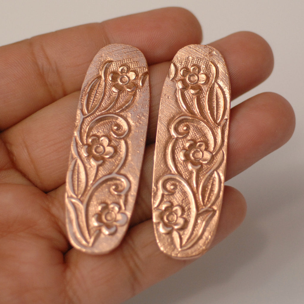 Freeform oval shapes w/ floral texture metal blanks - Solid copper