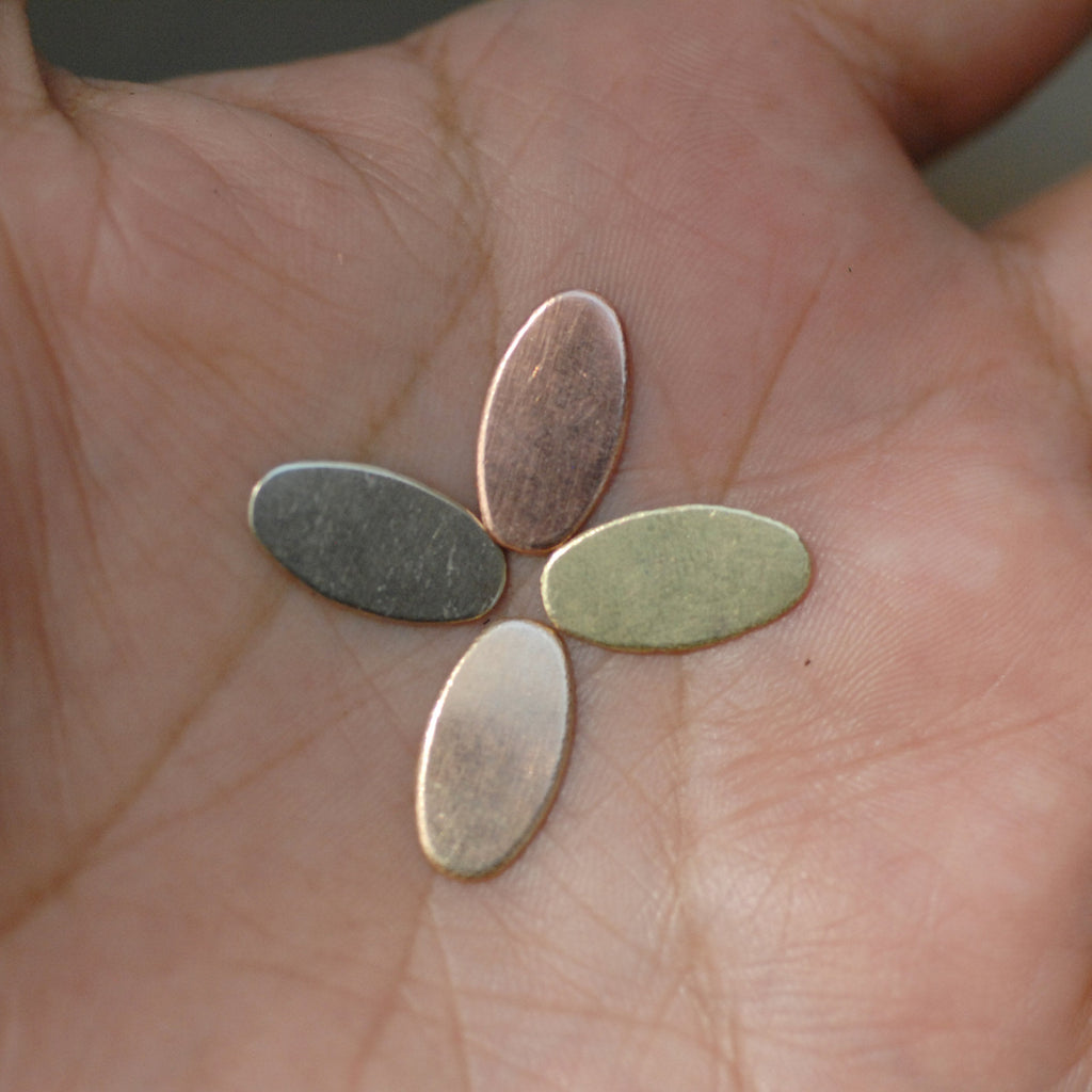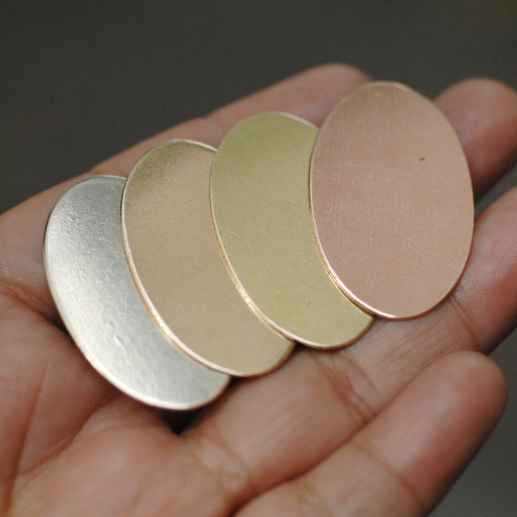 Our handmade Oval metal blanks for hand stamping are high quality, cut from sheet metal, deburred, and cleaned. These blanks have a nice smooth surface ideal for hand stamping. These can also be used as blanks for engraving after you finish the metal to your liking. Make your own jewelry with our stamping blanks available in Copper, Brass, Bronze, and Nickel Silver. Add your own holes with punching tools or ask us to cut custom holes for you.