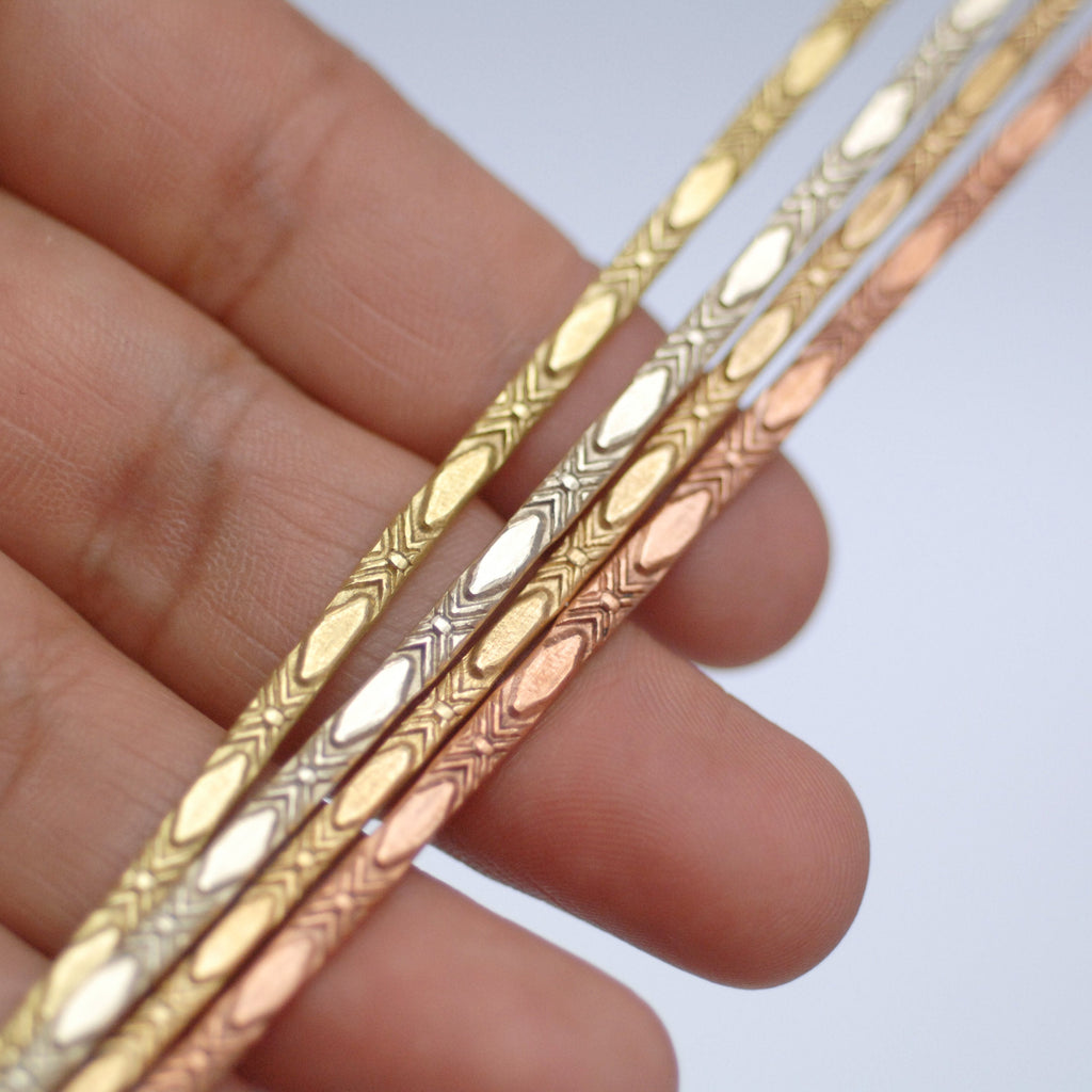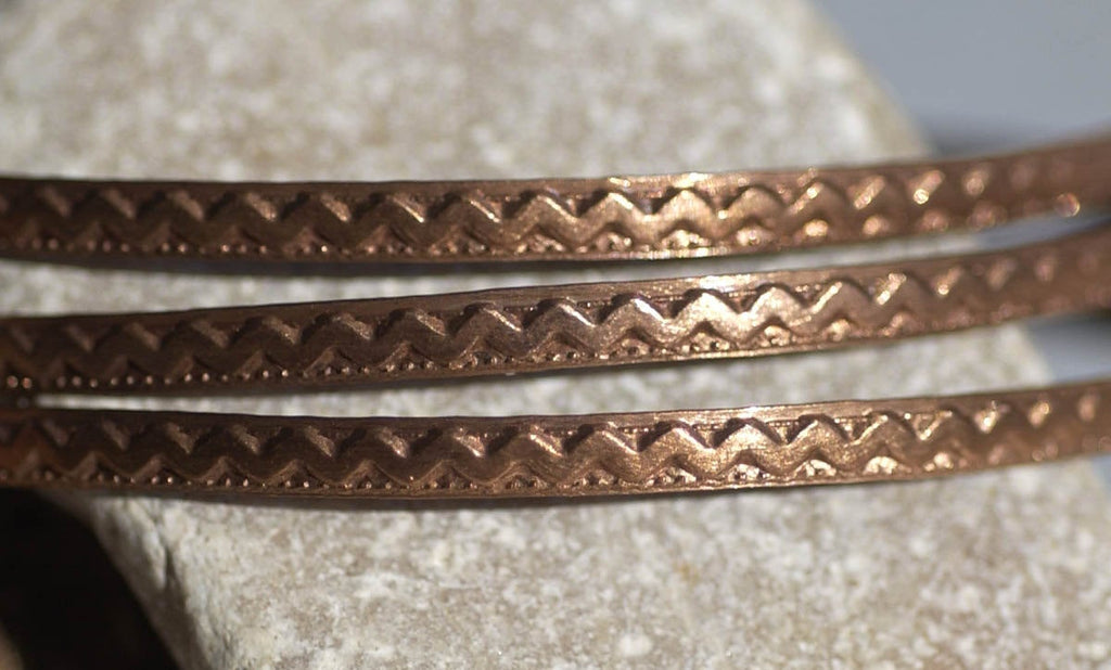 High quality textured ring and bracelet stock made in our workshop on rolling mills. Make your own jewelry with our Ring and Bracelet Stock available in Copper, Brass, Bronze, and Nickel Silver. We make all our own products, so if you need another size or gauge just ask we are happy to help! Our ring and bracelet stocks are available in a wide variety of metals and gauges! If you don't see what you are looking for we are happy to work with you and put up a custom item.