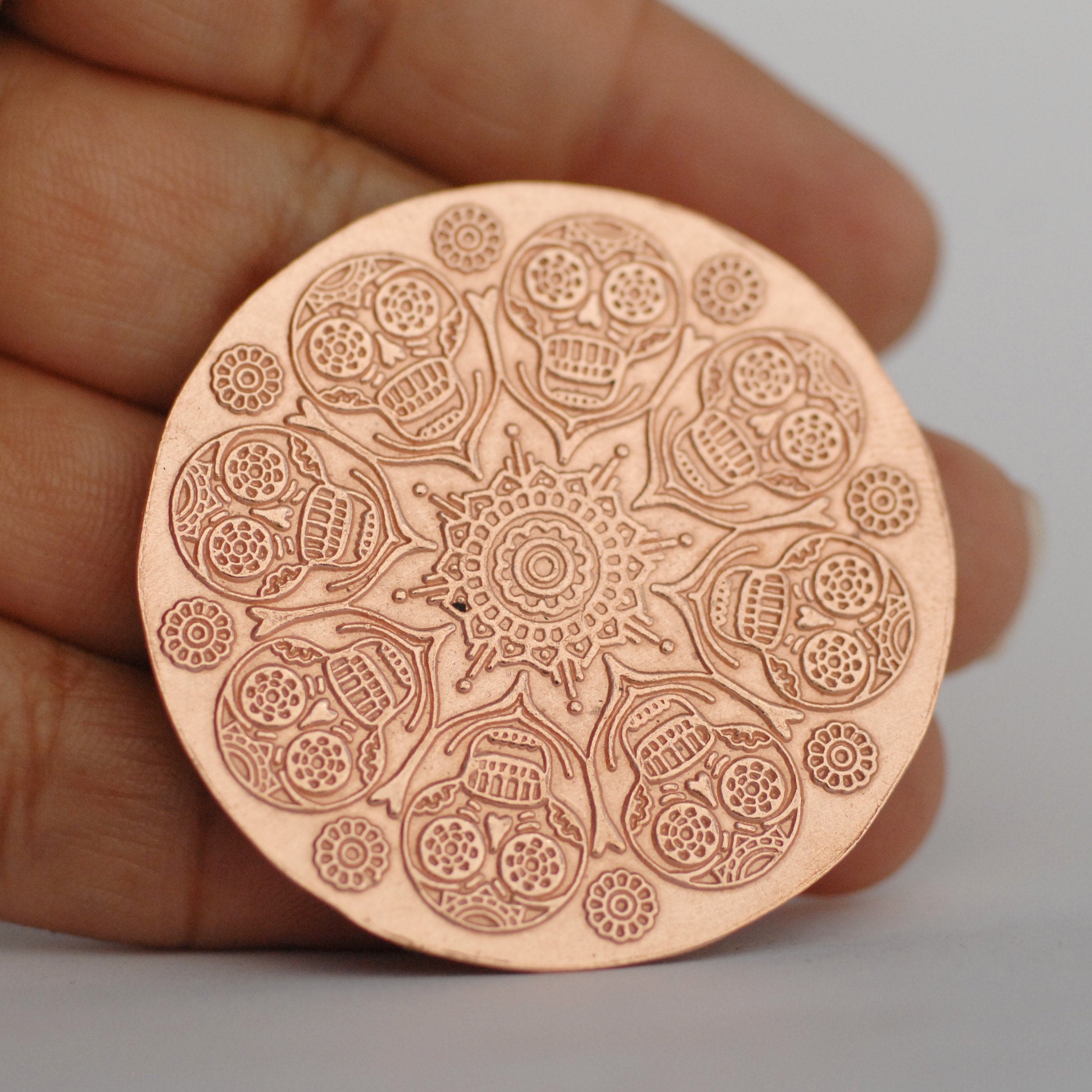 This Artwork took me quite some time to do. These would make Pendant pieces. 42mm Disc Blanks Sugar Skulls Flower for Metalworking Soldering Blank Jewelry Making. Here at SupplyDiva we produce high quality textured and embossed blanks in unique shapes and patterns. Forget about hand-sawing and filing, our products are ready to use and will save you time! All of our blanks are cut by us, and then we spend a lot of time carefully deburring and cleaning.