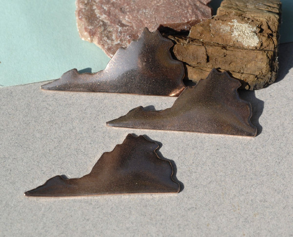 The application possibilities are massive for these! The tiny states can be soldered onto rings, pendants, body jewelry, or made into charms. The larger blanks can be used as the base of earrings or pendants, riveted or sewn onto bracelets. Used as tags for photo albums or scrapbooks. They are useful anywhere you'd like to show your love of a place.