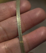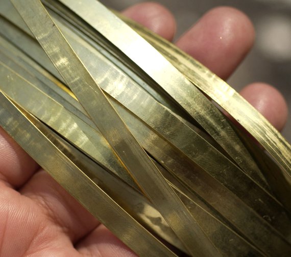 This Brass bezel wire was made in our workshop, we begin with round wire and pass it through our rolling mill until the desired gauge is reached. This wire will vary slightly in gauge due to it's handmade nature.