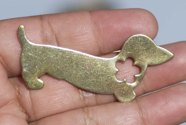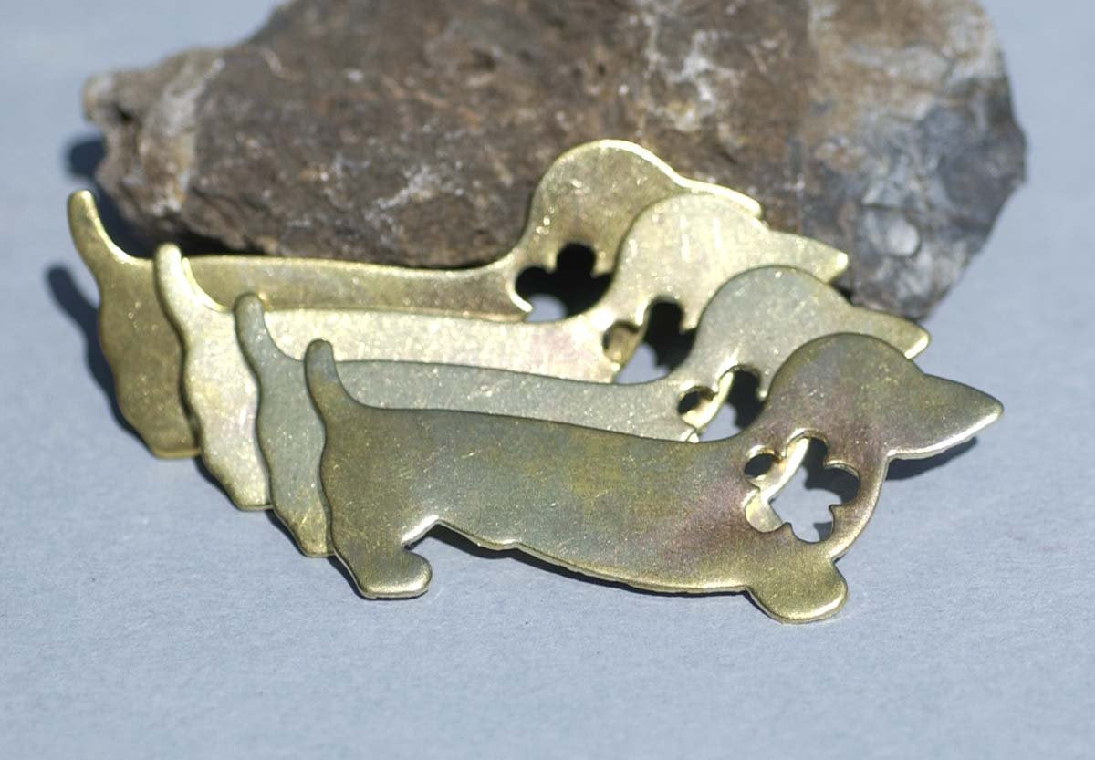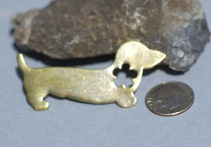 Brass or Bronze Blanks Dog Doxie with Flower Cutout Charm for Stamping Texturing Metalworking Blank,
