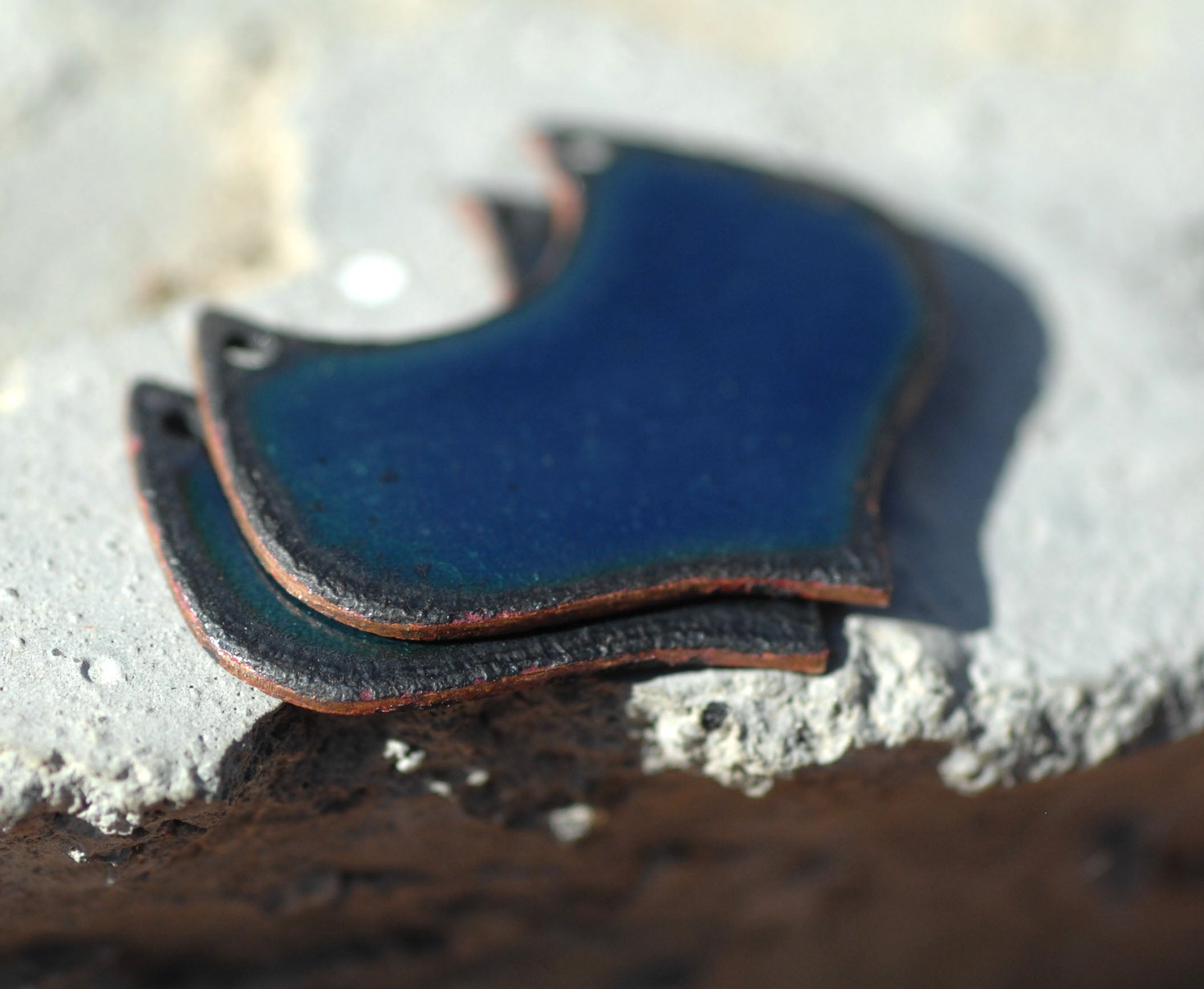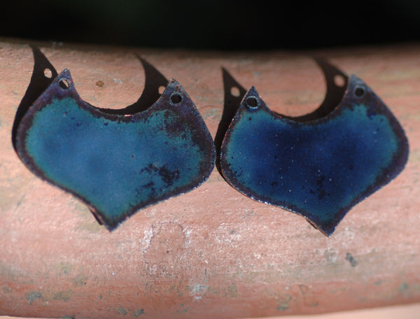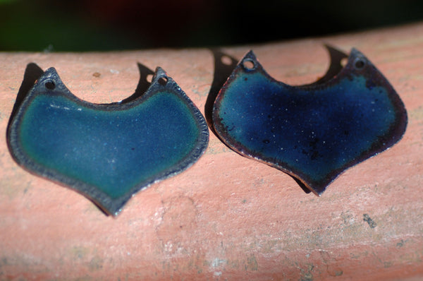 These Vitreous Glass Enamel were made by us. We cut the copper shape, filed it, cleaned it, and used Powder Enamel to produce it in a 1450 degree kiln. It is quite a process. This pair measures 26.7mm x 21.9mm.They weigh 4 grams each