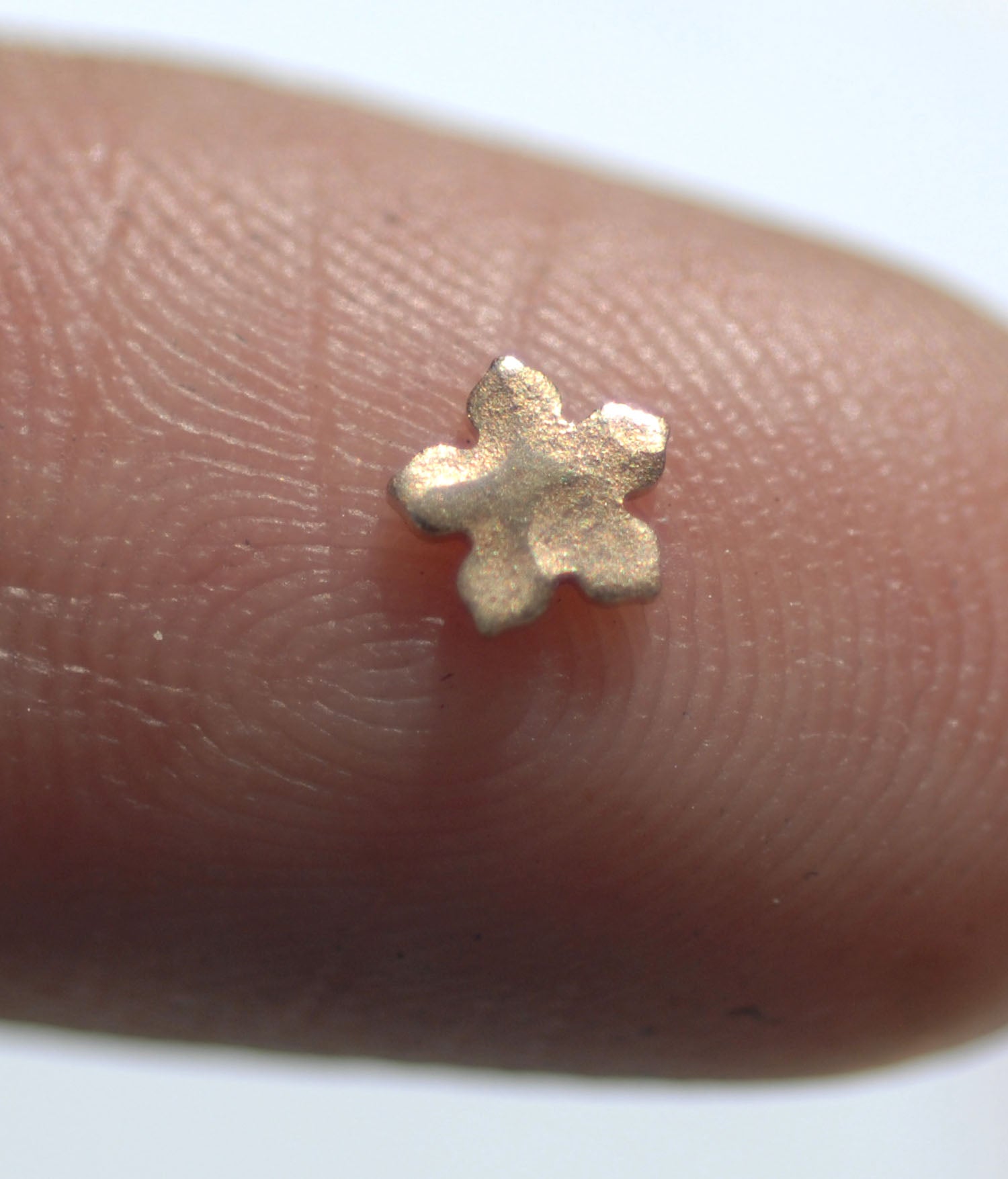 These tiny cutouts have a Hammered textured, the backside is smooth. Super cute tiny Flower Pointed Hammered blanks! Perfect for soldering onto stackable rings, earrings, layered pendants. These are super tiny, As you can see the edges are quite crisp!