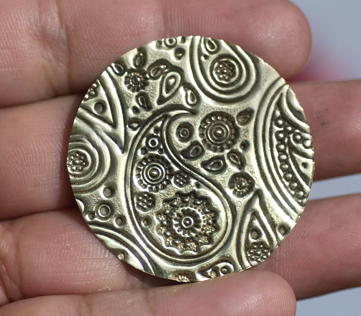 Blank Disc 35mm Paisley Textured Cutout for Jewelry Making Metalworking Blanks Soldering,