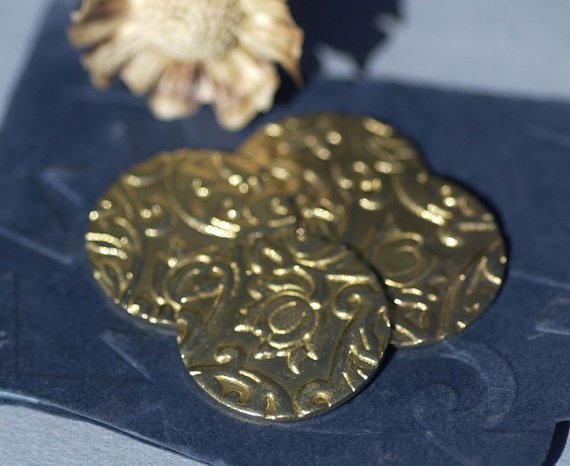 Brass or Bronze Blanks Disc 20mm in Lotus Flowers Textured for Metalworking Polished Stamping Blank Jewelry Making,