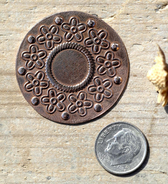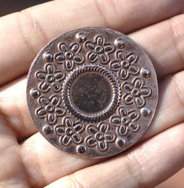 Disc 38mm Texture in Flowers, for Enameling Jewelry Making Shape Blank