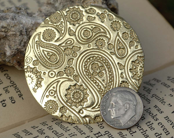 Blank Disc 50mm Paisley Textured Cutout for Jewelry Making Metalworking Blanks Soldering, Variety of Metals,