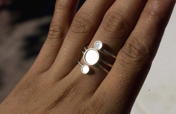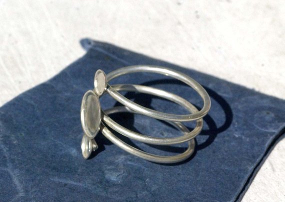 Sterling silver bezel cup and wire ring. I have worked on this design for a very long time to get the right mix of bezel cup sizes on it, they are comfortable to wear as well. These rings are made by us in our workshop! These are really high quality.