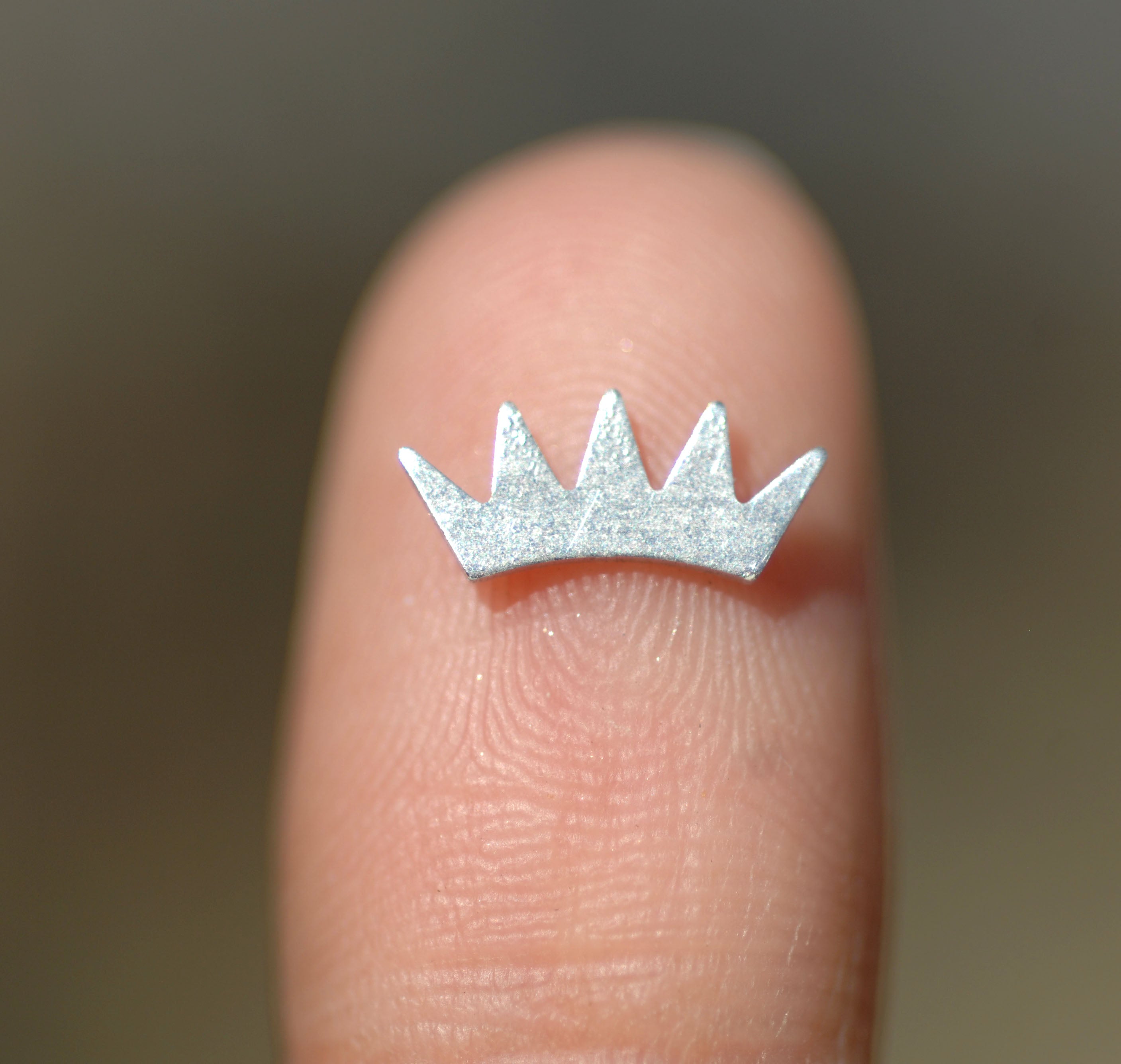 Super cute tiny Crown! Perfect for soldering onto stackable rings, earrings, layered pendants. These are super tiny, As you can see the edges are quite crisp!